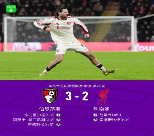 剑南春利物浦23伯恩茅斯,范戴克破门,索博斯洛伊传射